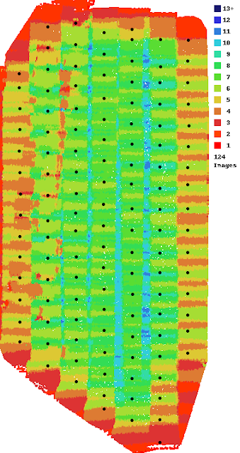 It only took a few minutes to download the 124 images that were collected off of the drone and upload them to the Maps Made Easy site. Processing the flight, which was 13.52 acres, with mensuration, cost me 336 points. This would be a job that cost a little over $10 if I wasn't using the promotional signup points.